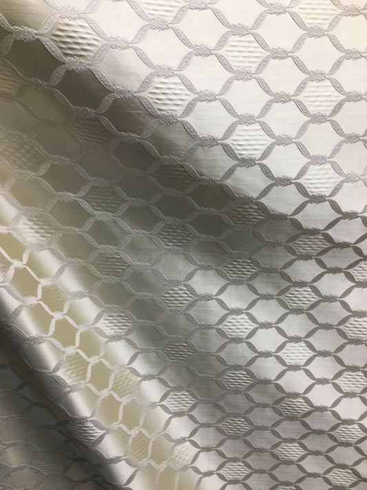 WHITE Striped Brocade Upholstery Drapery Fabric (110 in.) Sold By The Yard