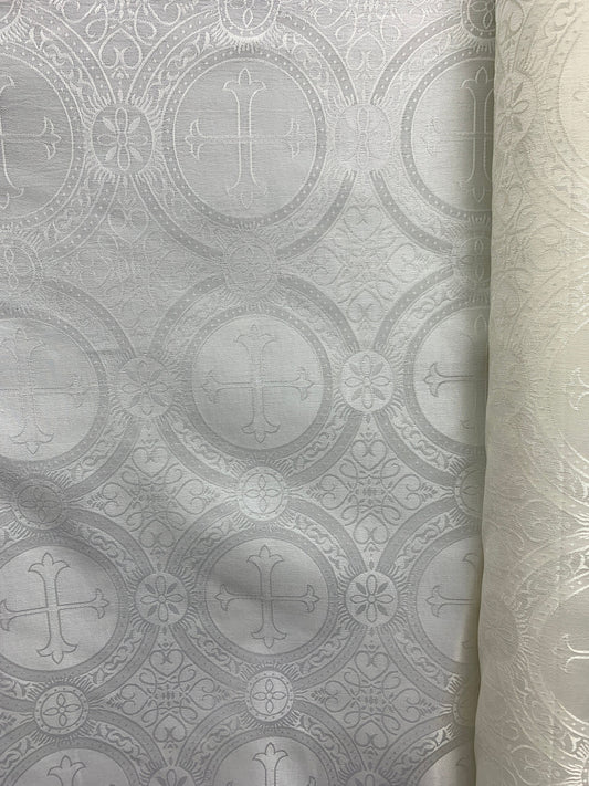 WHITE Liturgical Cross Brocade Fabric (55 in.) Sold By The Yard