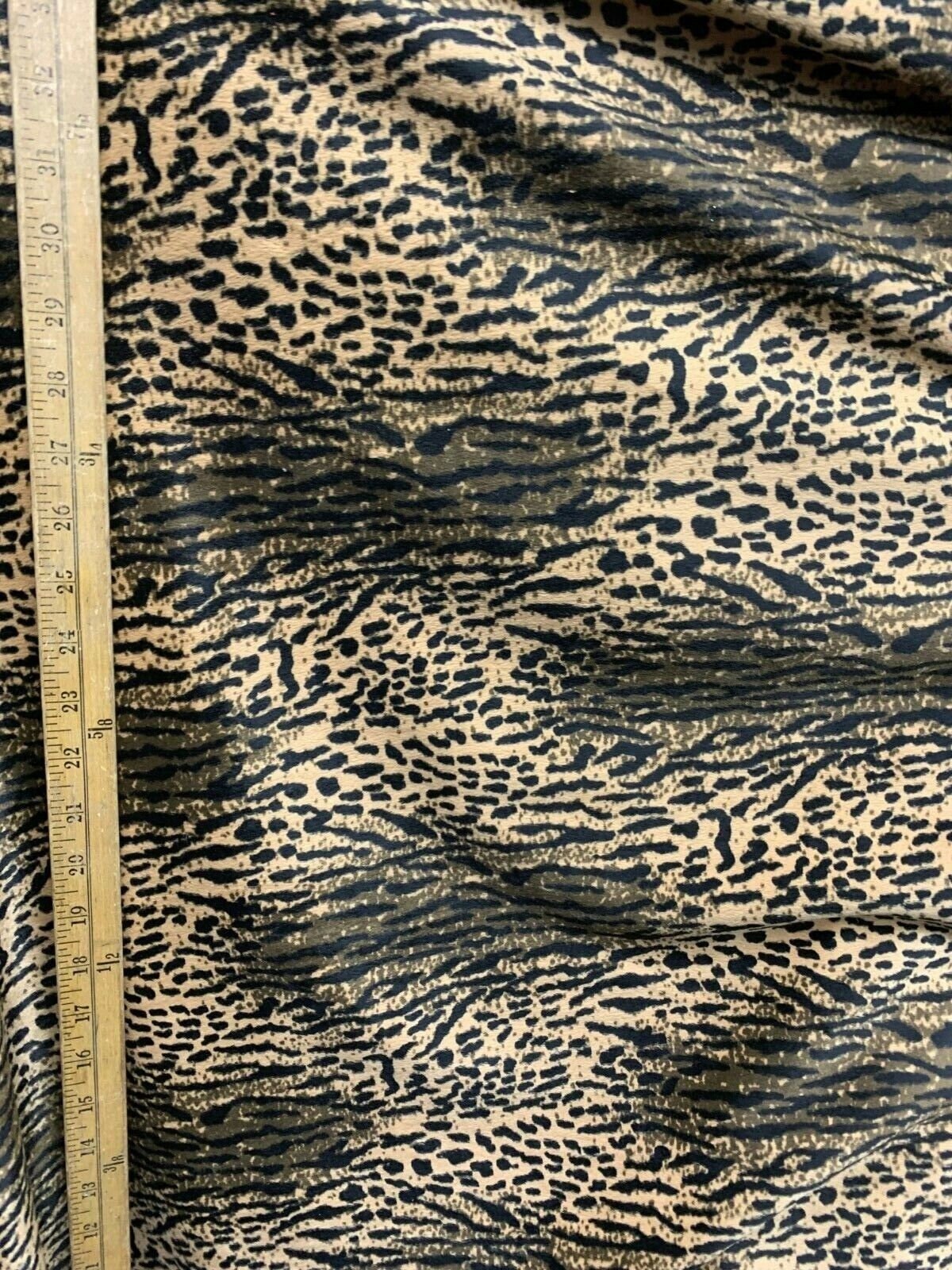 A beautiful, beige, brown, and multicolor, faux/fake fur fabric. Short hair. This fabric will work for upholstery, apparel, crafts, costumes, decorations, and much more. High quality. Sold by the yard. (1 yard= 36 in.) Width is 60 in.