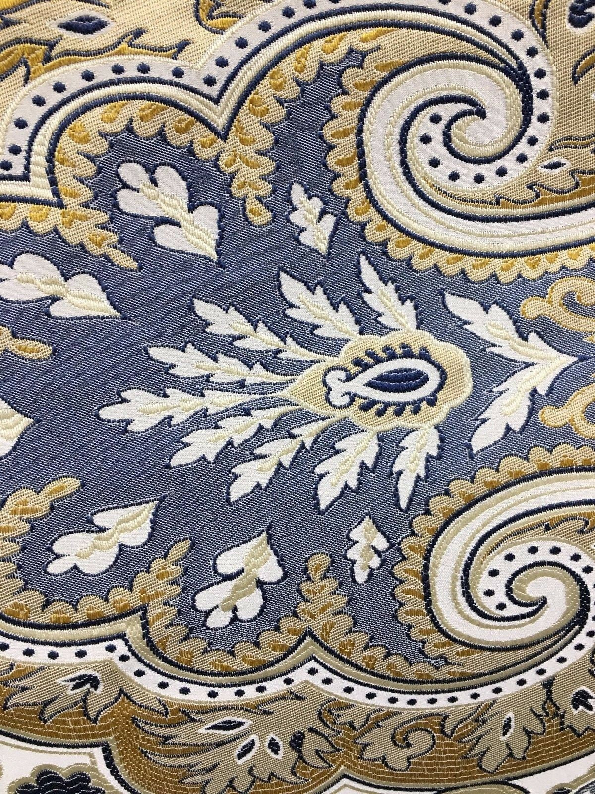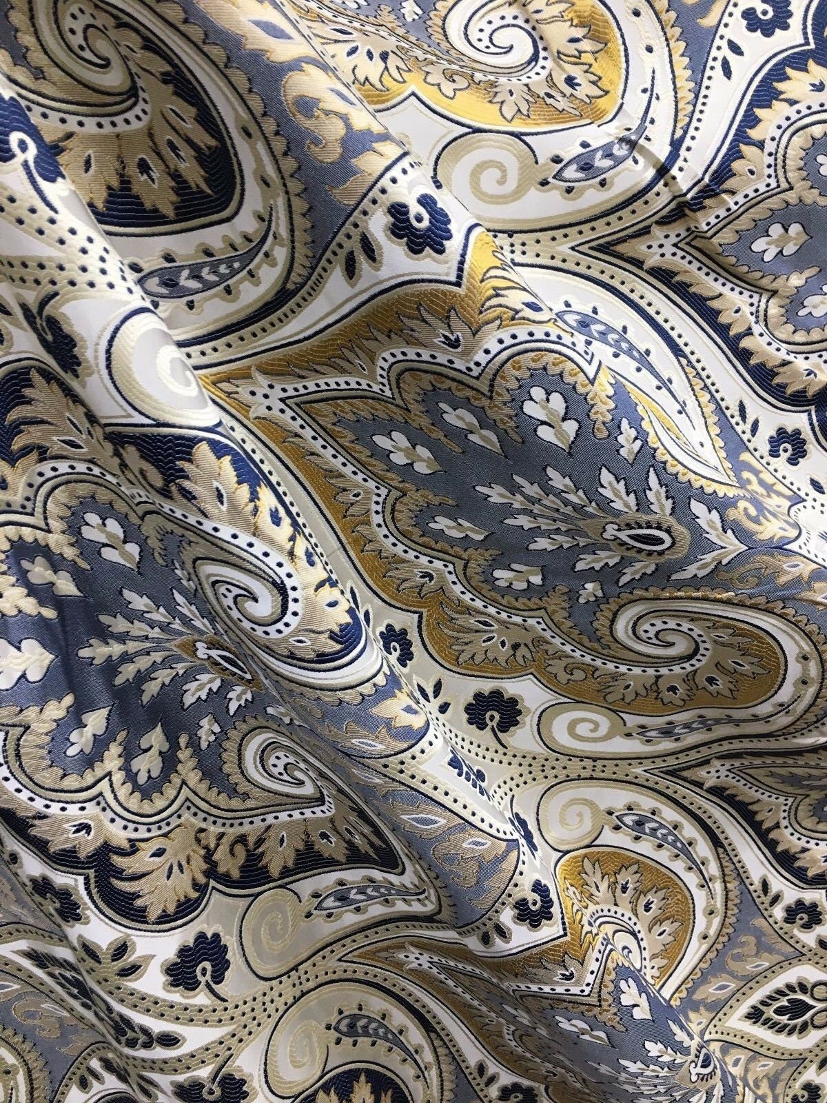 BLUE GOLD IVORY Damask Brocade Upholstery Fabric (58 in.) Sold By The Yard