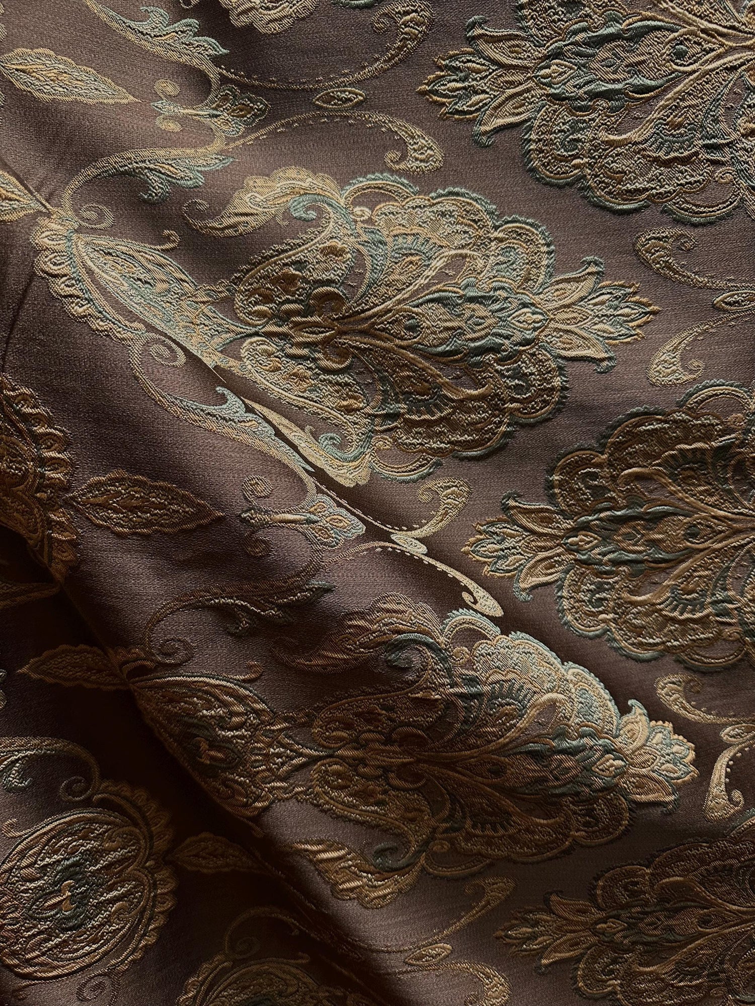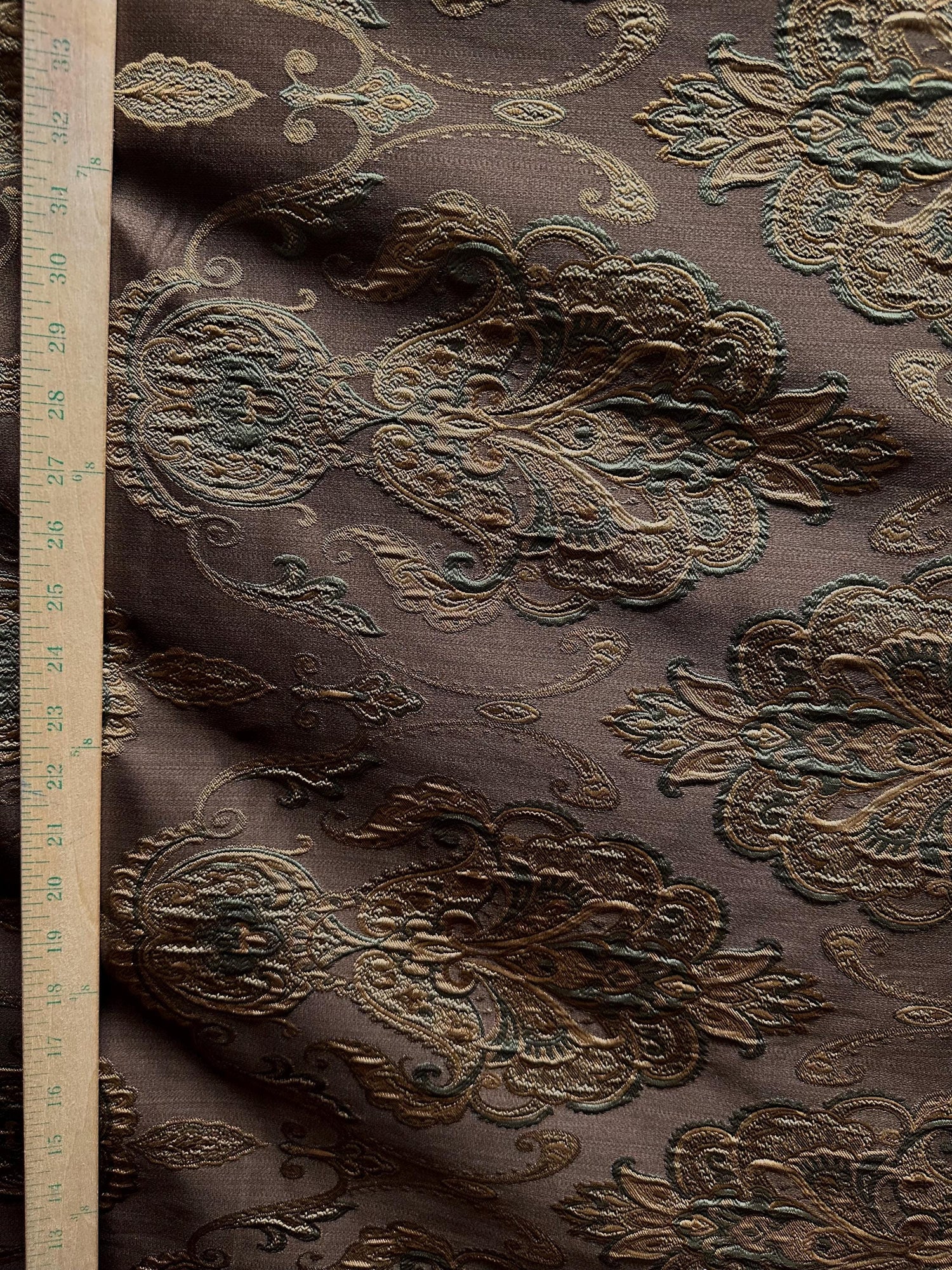 BROWN GOLD GREEN Damask Brocade Upholstery Drapery Fabric (110 in.) Sold By The Yard
