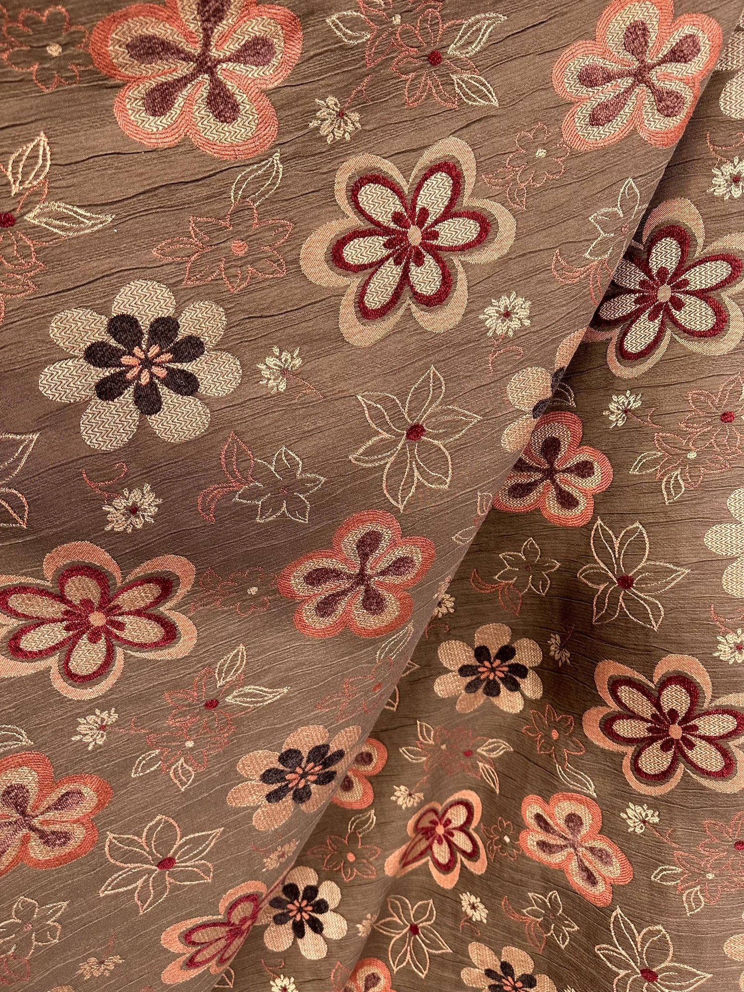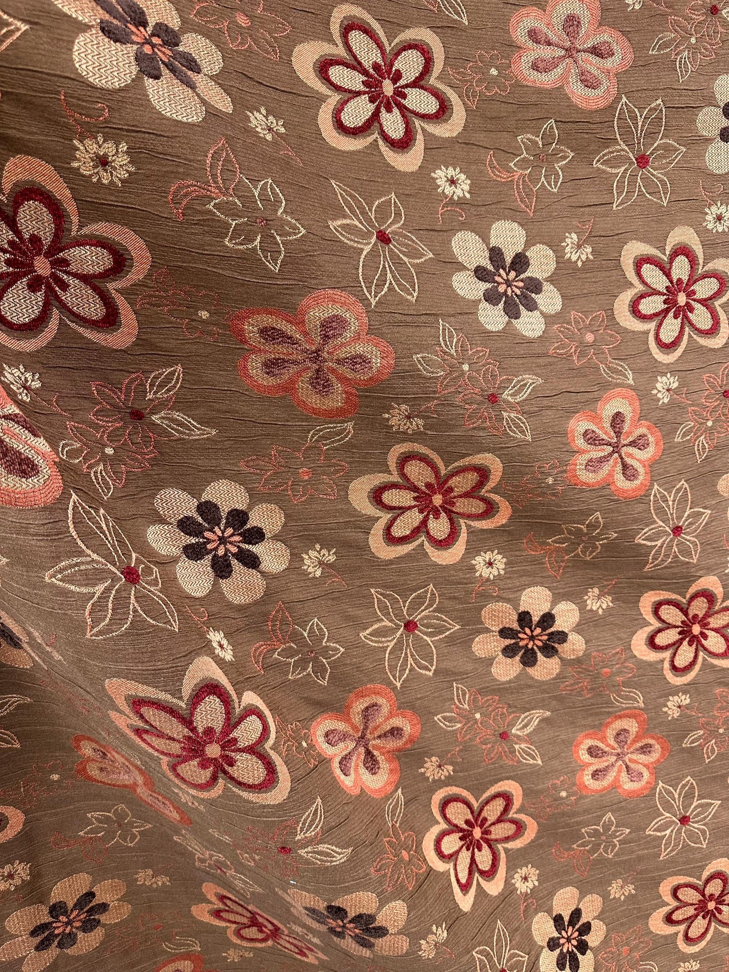 BROWN MULTICOLOR Floral Chenille Upholstery Brocade Fabric (56 in.) Sold By The Yard