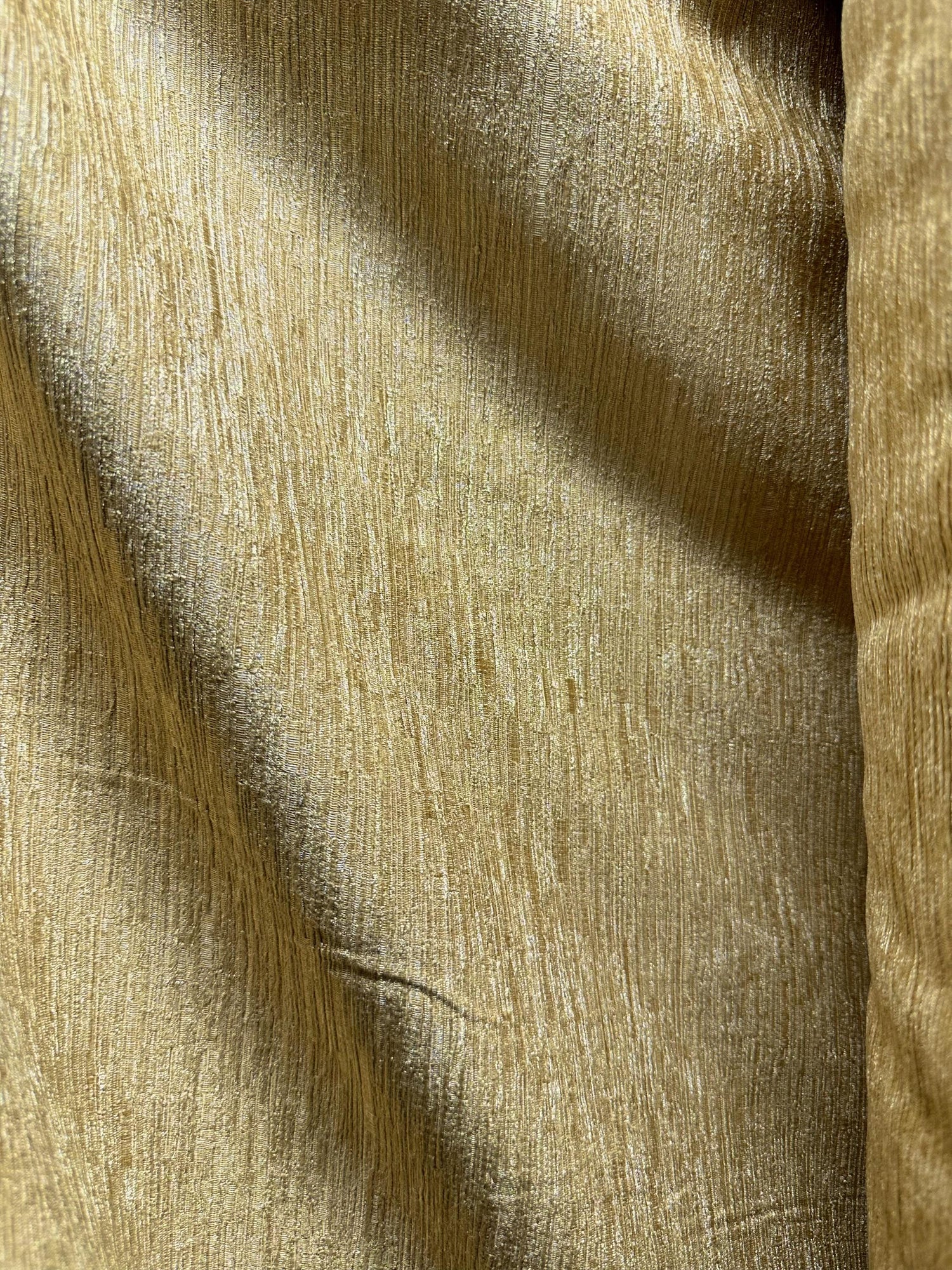 A beautiful, gold, solid chenille velvet upholstery/drapery fabric. Extra wide. Super high quality. 100% polyester. Sold by the yard. (1 yard= 36 in.) Width is 110 in.