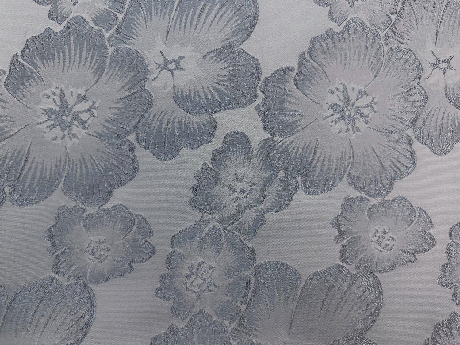A beautiful, gray, floral brocade fabric. It is great for apparel, drapery, and much more. High quality. Sold by the yard. (1 yard= 36 in.) Width is 60 in.