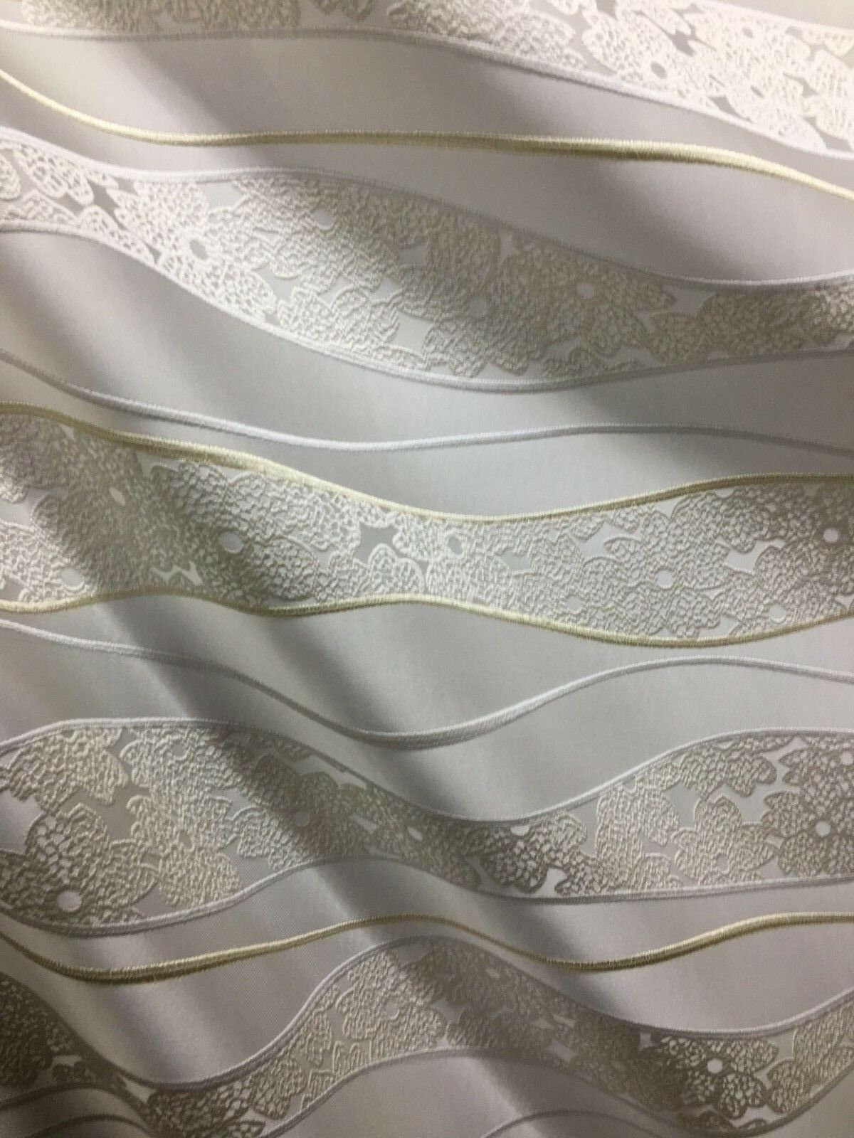 A beautiful, milk white and ivory, floral upholstery and drapery brocade fabric. High quality. Sold by the yard. (1 yard= 36 in.) Width is 54 in.