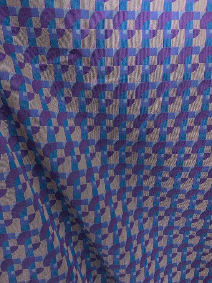 A beautiful, purple, teal, and multicolor, upholstery brocade fabric with a geometric pattern. High quality. Sold by the yard. (1 yard= 36 in.) Width is 54 in.