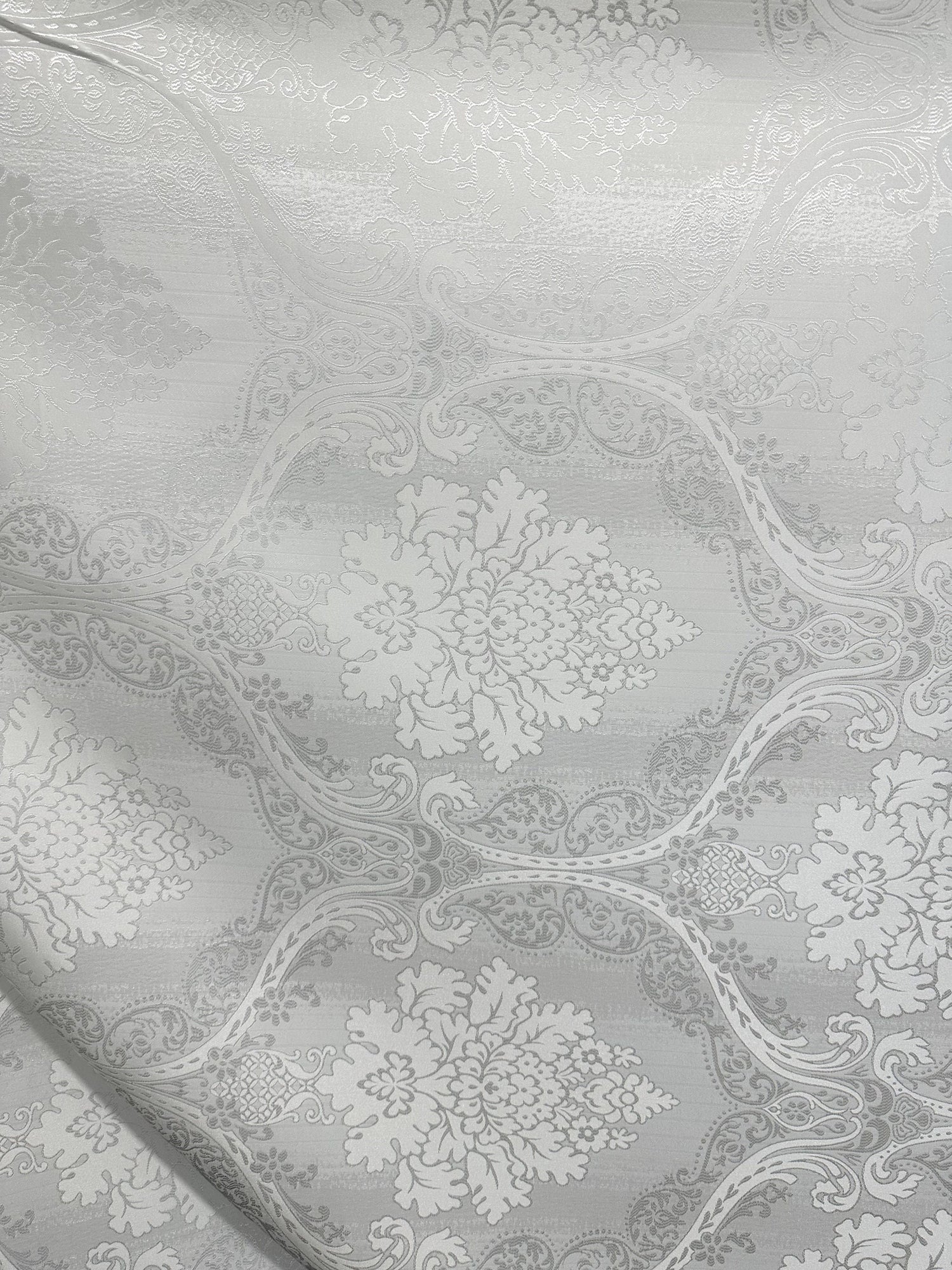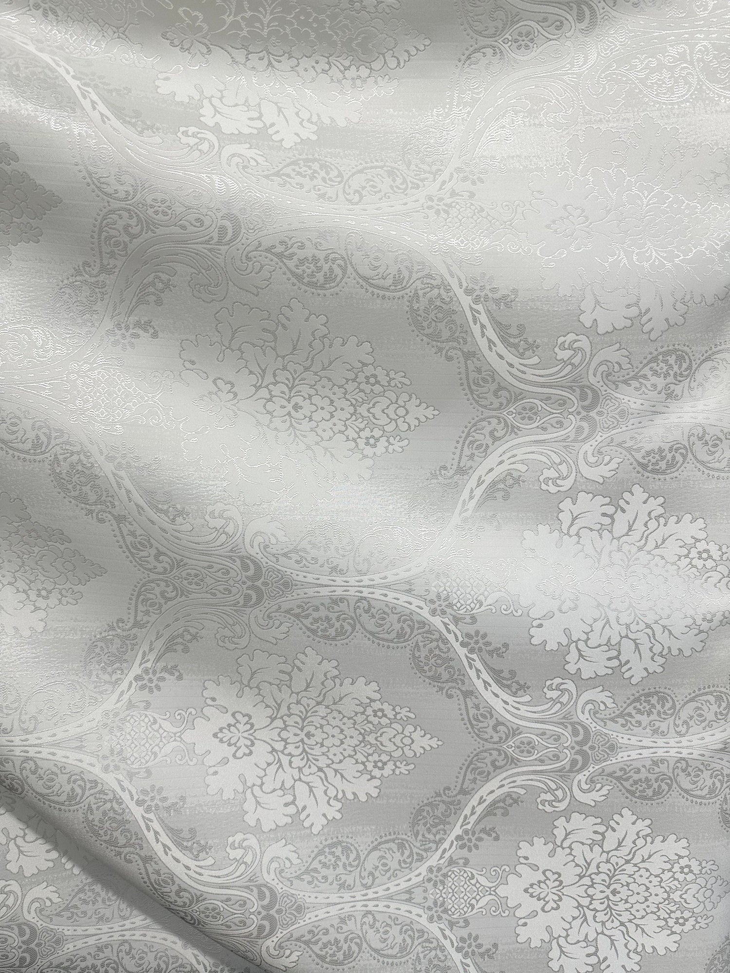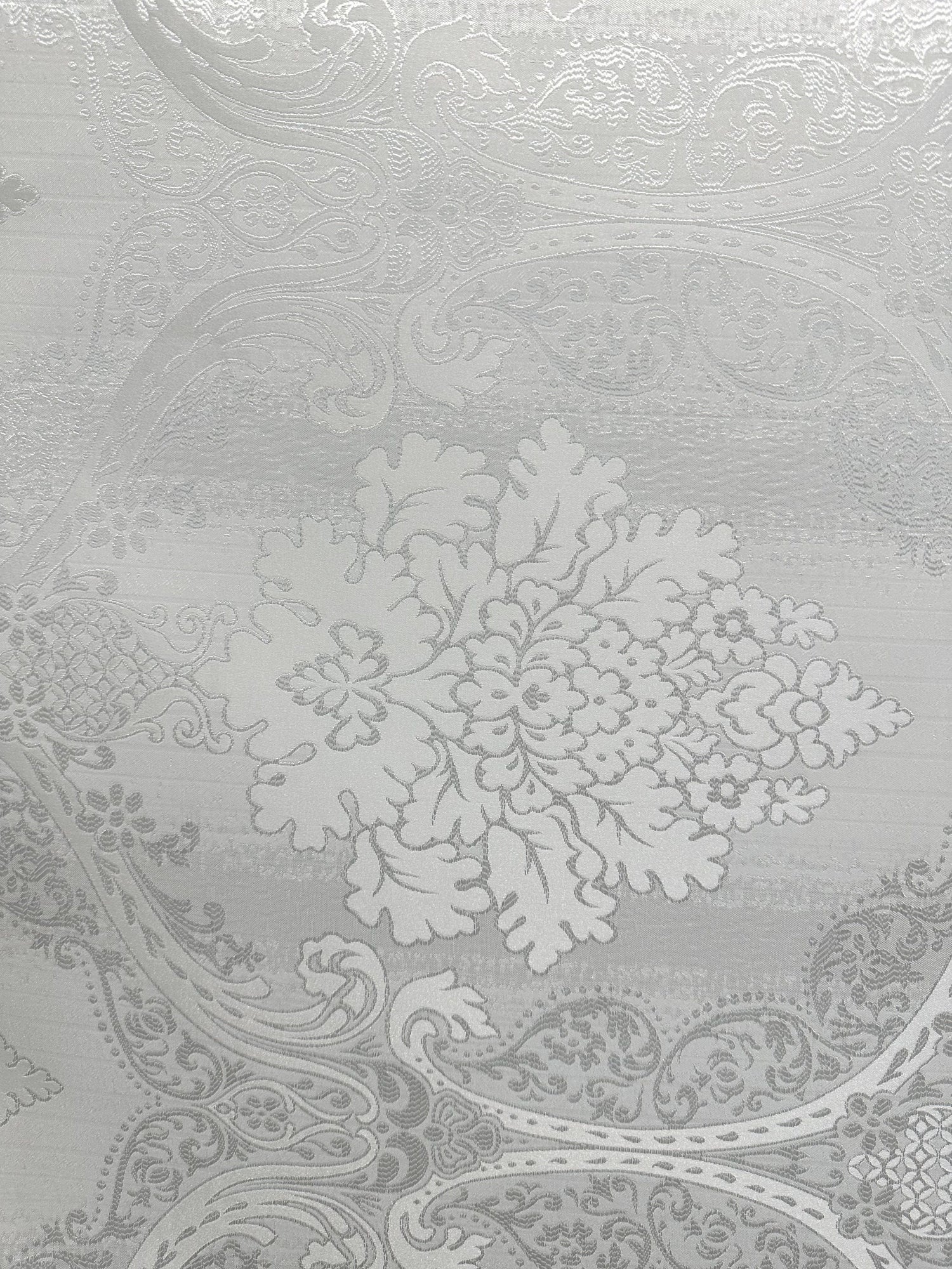 WHITE Damask Brocade Upholstery Drapery Fabric (110 in.) Sold By The Yard